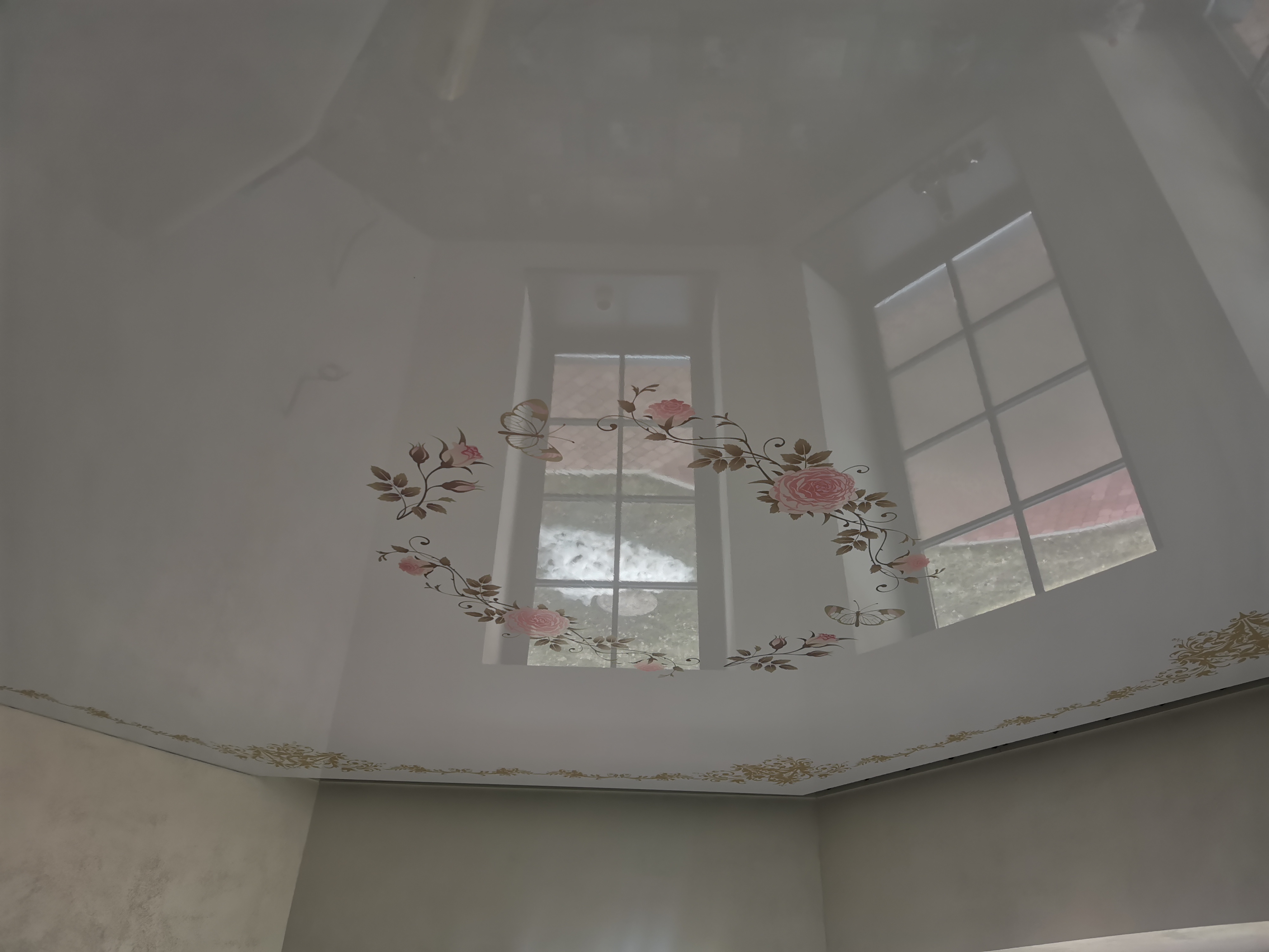 Глянцевое полотно помогает избежать аварийных протечек от соседей или с крыши. Оно выдерживает весовую нагрузку до 100 л воды на м², а после ее удаления возвращается к исходному состоянию, не требуя повторного натяжения.