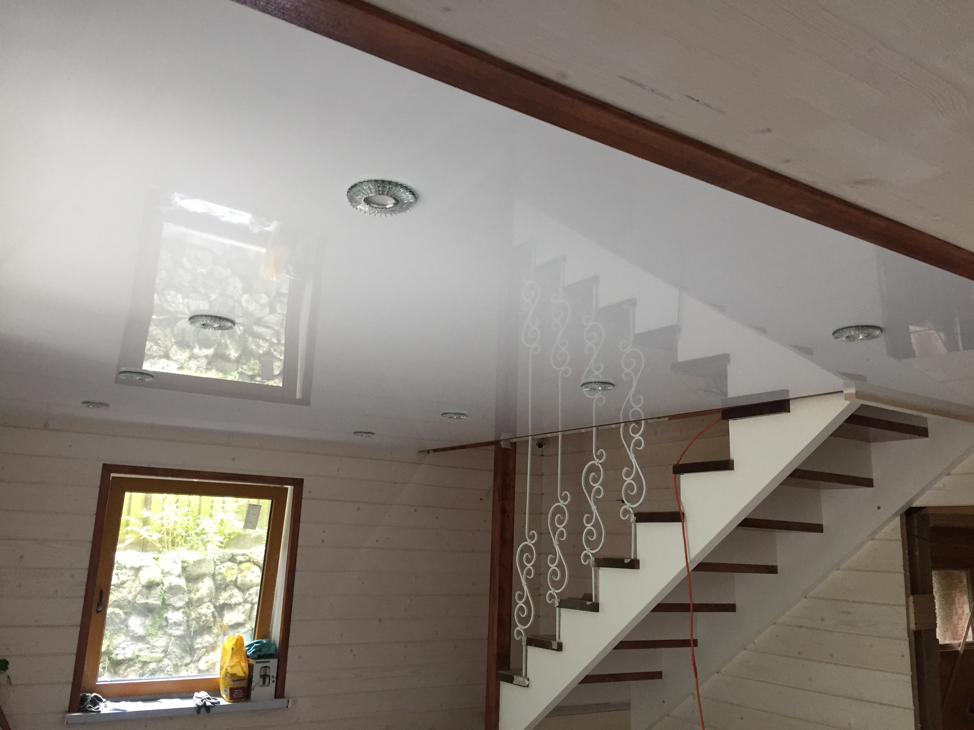 Белый натяжной глянцевый потолок не притягивает пыль, не впитывает посторонние запахи, не становится благоприятной средой для размножения бактерий и грибков. При правильном уходе на его поверхности не появляются царапины, не остаются пятна и разводы. Для протирки полотна нельзя использовать: