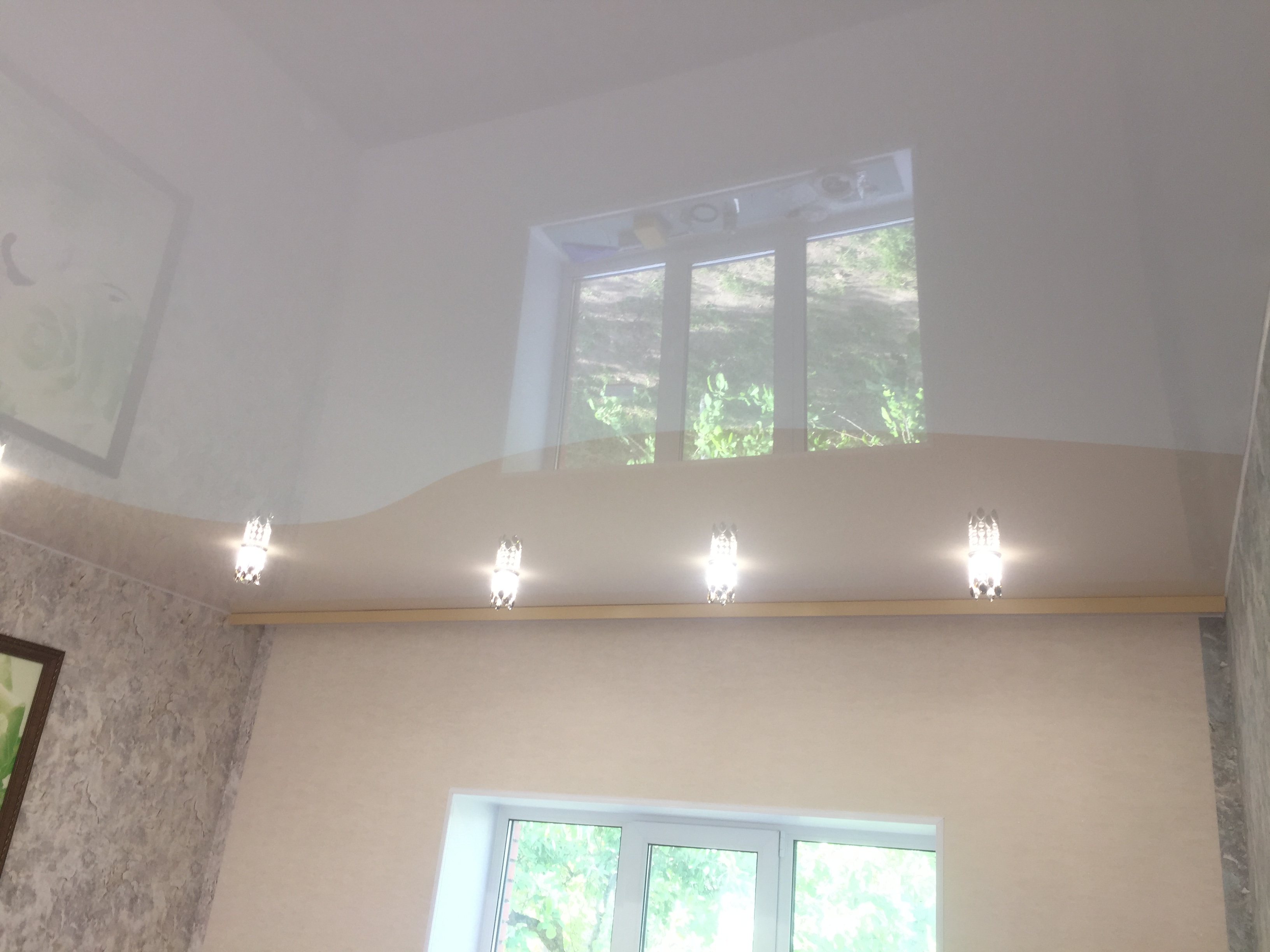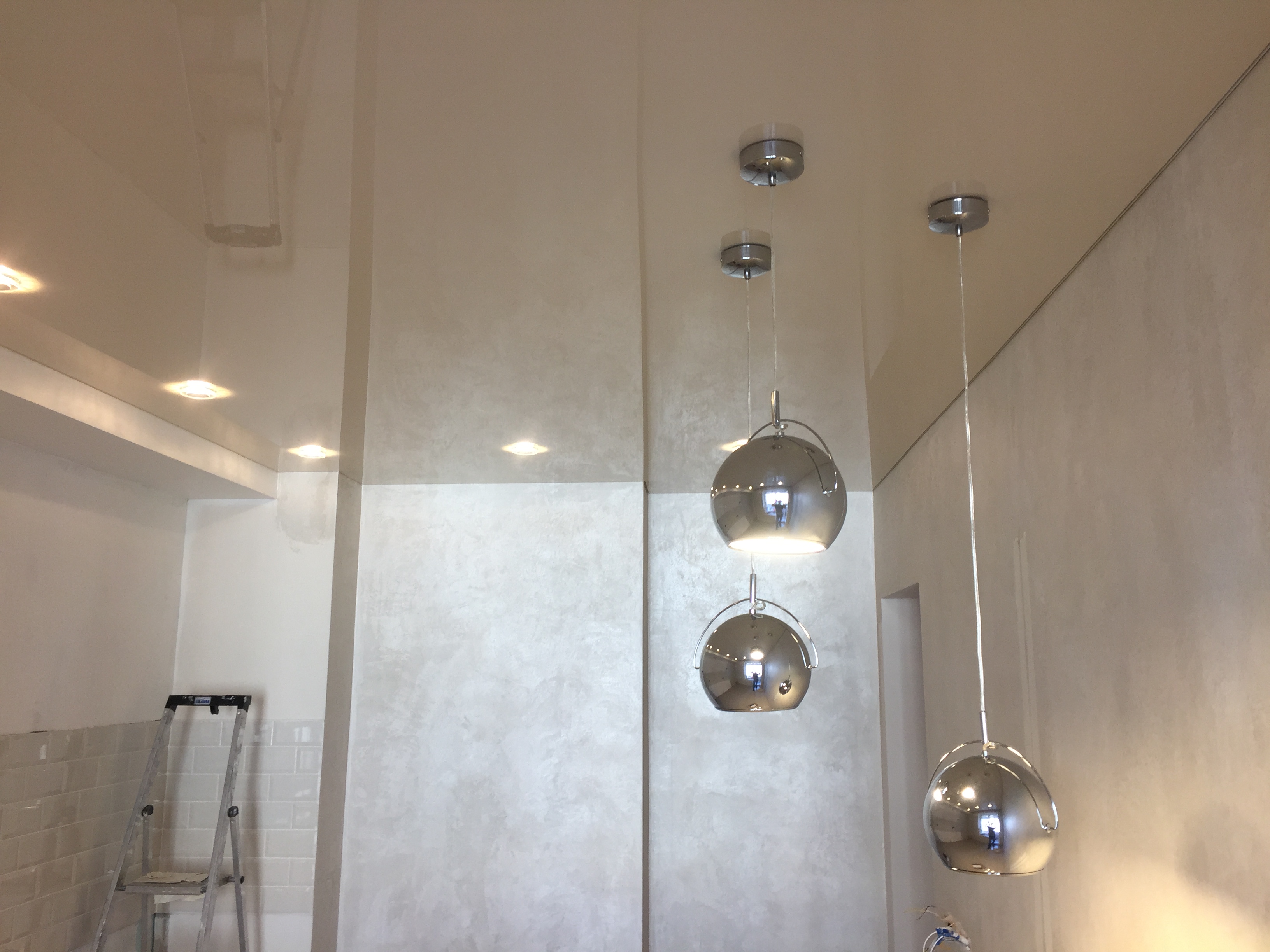 Белый глянцевый потолок придаст интерьеру особый шарм, если совместить его с: