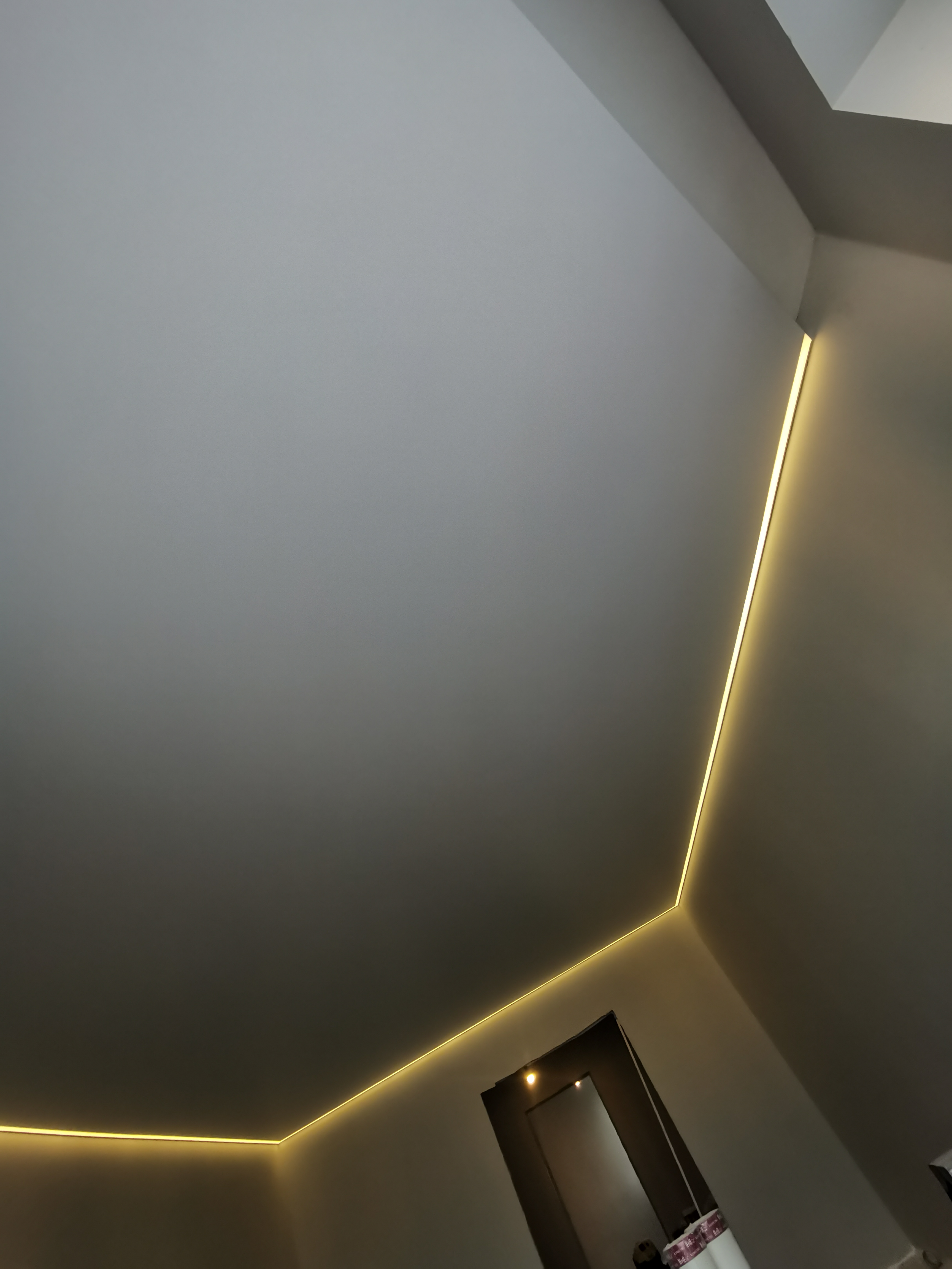 Перед установкой контурного потолка необходимо позаботиться о выравнивании стен. С этой целью можно использовать гипсокартон или штукатурку. В противном случае даже малейшие перепады высоты приведут к визуальным дефектам светящейся линии.