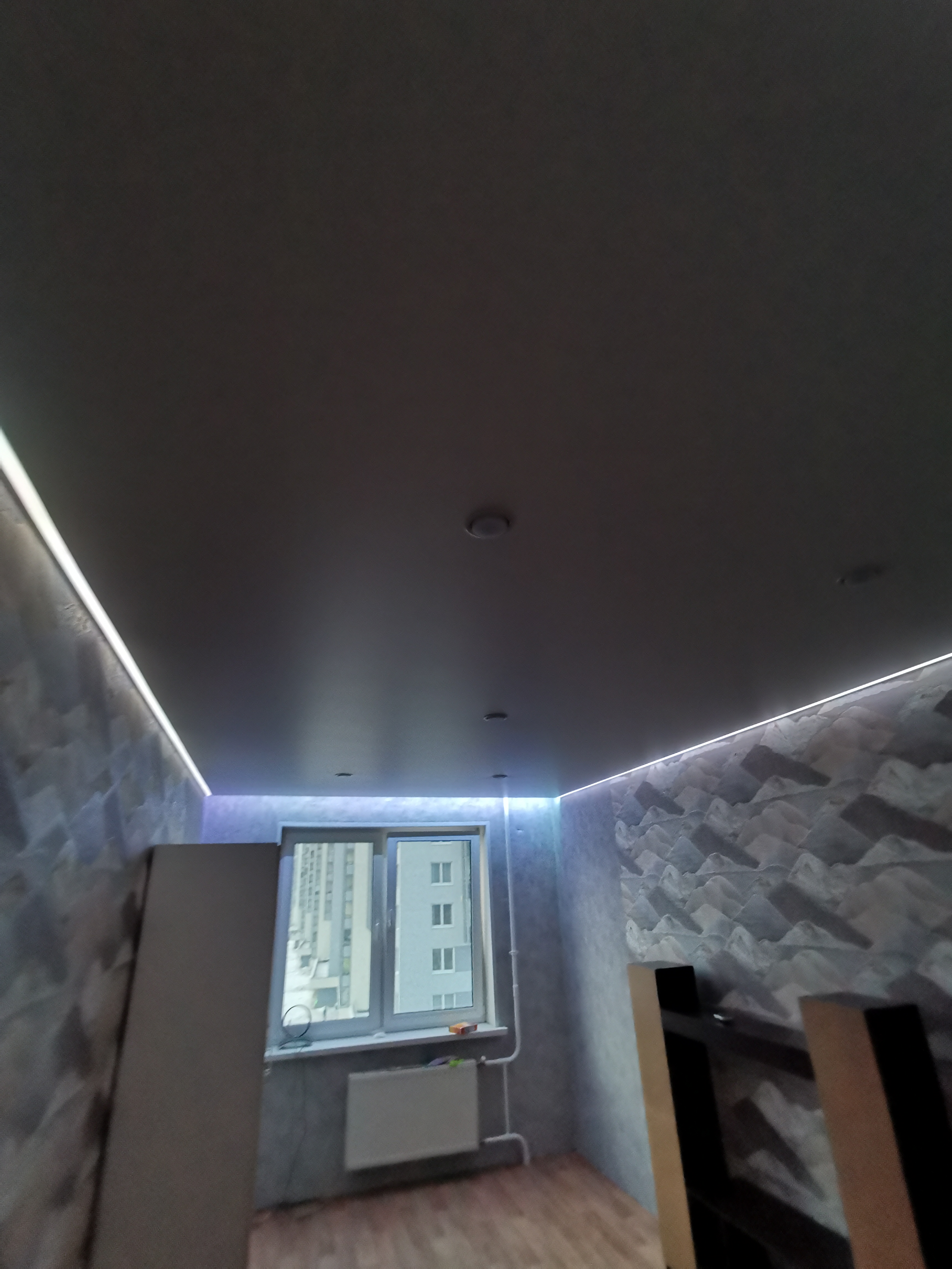 Контурная подсветка несовместима с темными оттенками натяжного полотна (черным, синим, фиолетовым, коричневым, бордовым). Они препятствуют свободному прохождению света, поэтому светящийся контур будет практически незаметен.