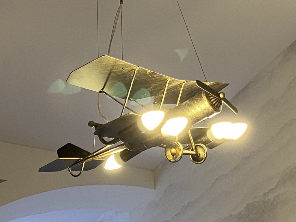 В современных люстрах используются как классические патроны для ламп, так и встроенные решения в виде различных узоров. Обратите внимание на люстру в виде самолёта — она изготовлена под заказ специально для детской комнаты. Это говорит о том, что выбор не ограничивается витринными экземплярами.
