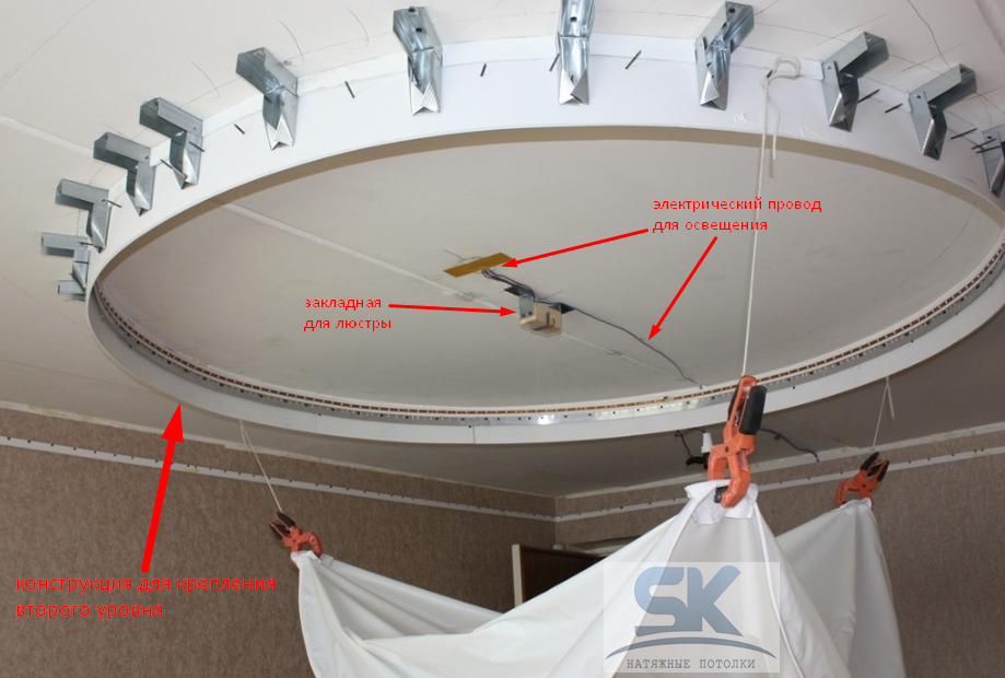 Установка каркаса для второго и следующих уровней потолка.