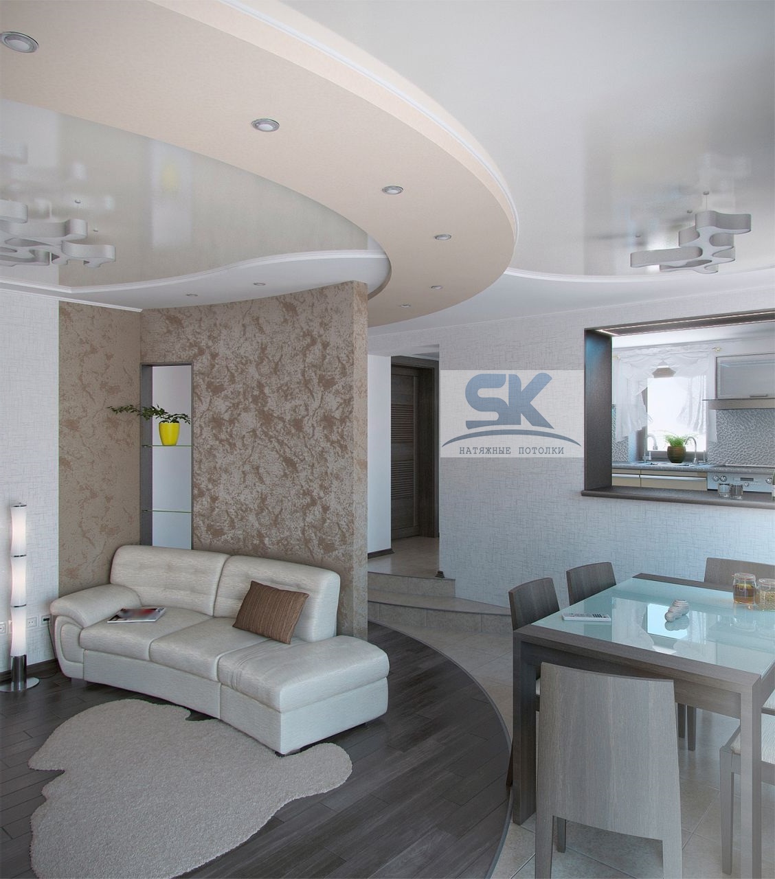 Наиболее долгие по времени осуществления процессы – это установка и обшивка каркаса, поэтому стоимость многоуровневых потолков будет выше, чем у других разновидностей. Однако, многоуровневые потолки прекрасно сочетаются с резными, парящими, фактурными, комбинированными и другими видами натяжных потолков. Если вы давно задумывались об организации натяжных многоуровневых потолков в своем помещение, то можете смело обращаться к мастерам компании «СК-Потолок» - мы бесплатно проконсультируем вас и выполним замеры.