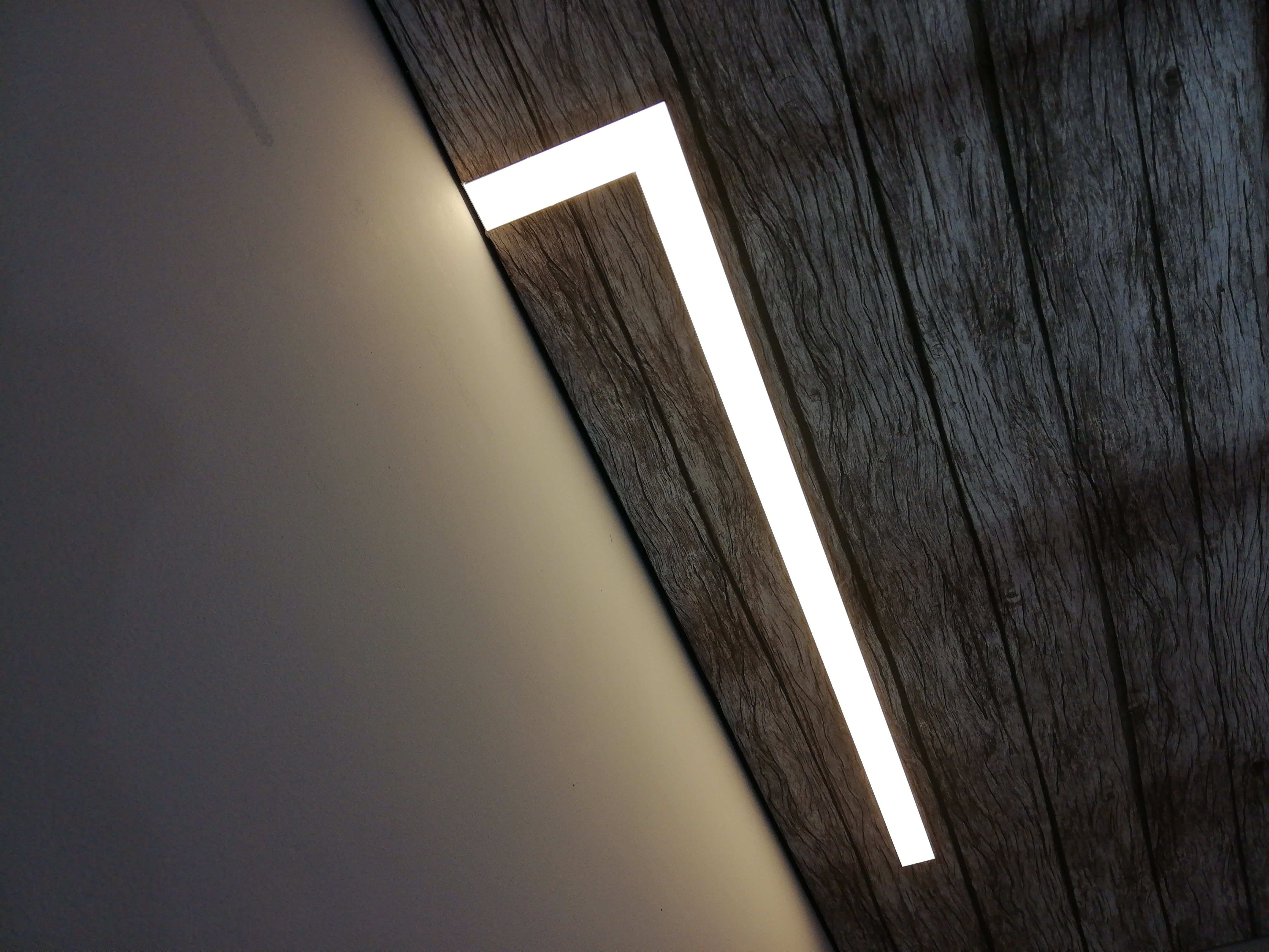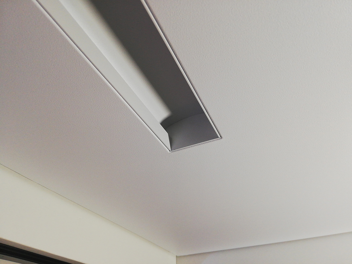Для контрастного выделения систем освещения подбираются черно-белые слот-профили, которые монтируются совместно со светодиодной лентой при ее продольной установке. Черный слот-профиль дает возможность использования стандартных светильников, точечного освещения или современных трек-систем.