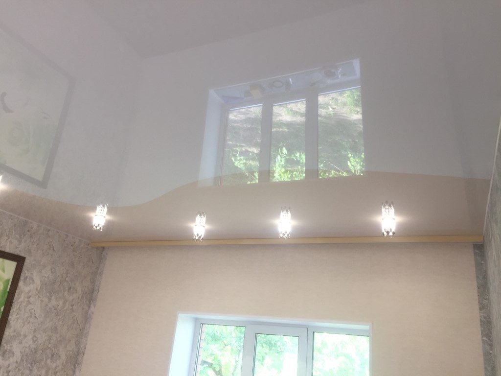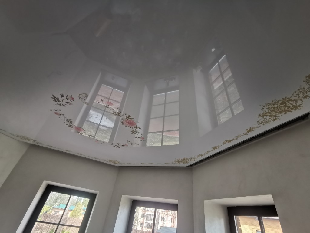 Глянцевые потолки выпускаются в десятках оттенков — от классического белого до насыщённых тёмных цветов. Они эффектно смотрятся в многоуровневых решениях, с подсветкой или оригинальными изгибами. При желании можно нанести фотопечать: «звёздное небо», облака или любой авторский рисунок.