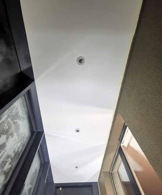Потолок можно сделать нейтральным и спокойным — чтобы он не отвлекал от интерьера, либо использовать отражающую поверхность для визуального расширения пространства. Возможна установка потолка с подсветкой, аккуратными световыми линиями или ненавязчивыми декоративными решениями без перегруженного дизайна.