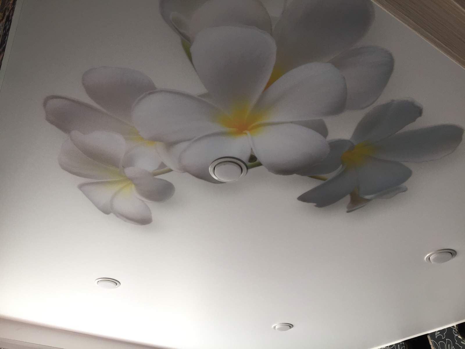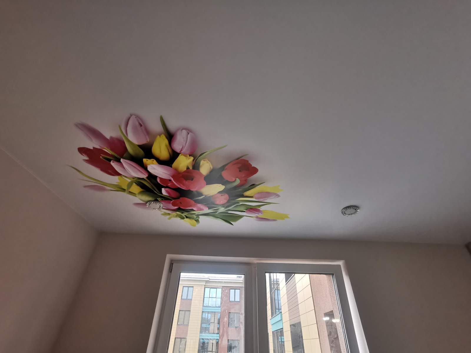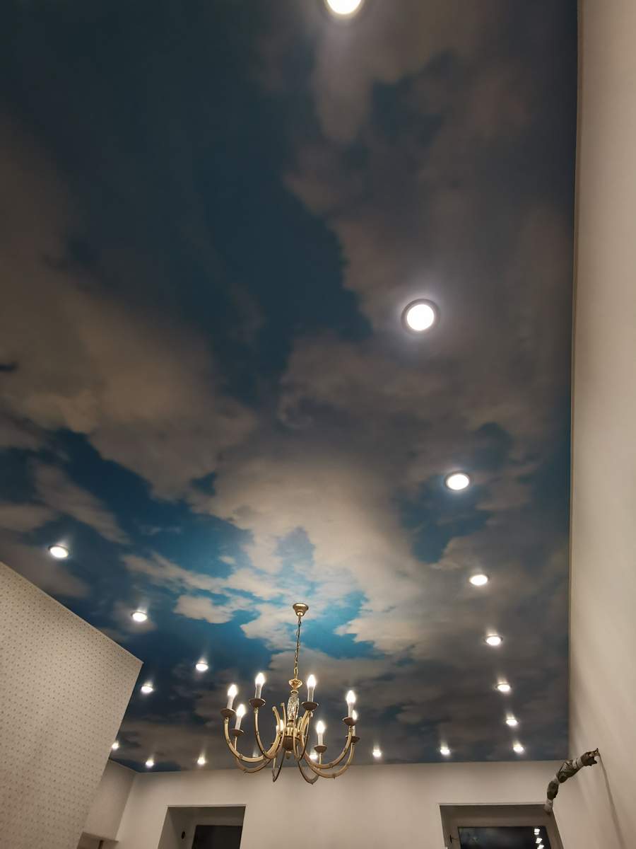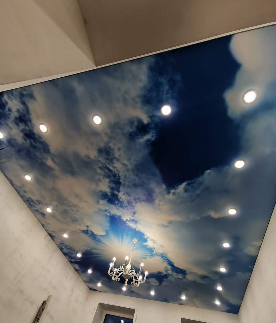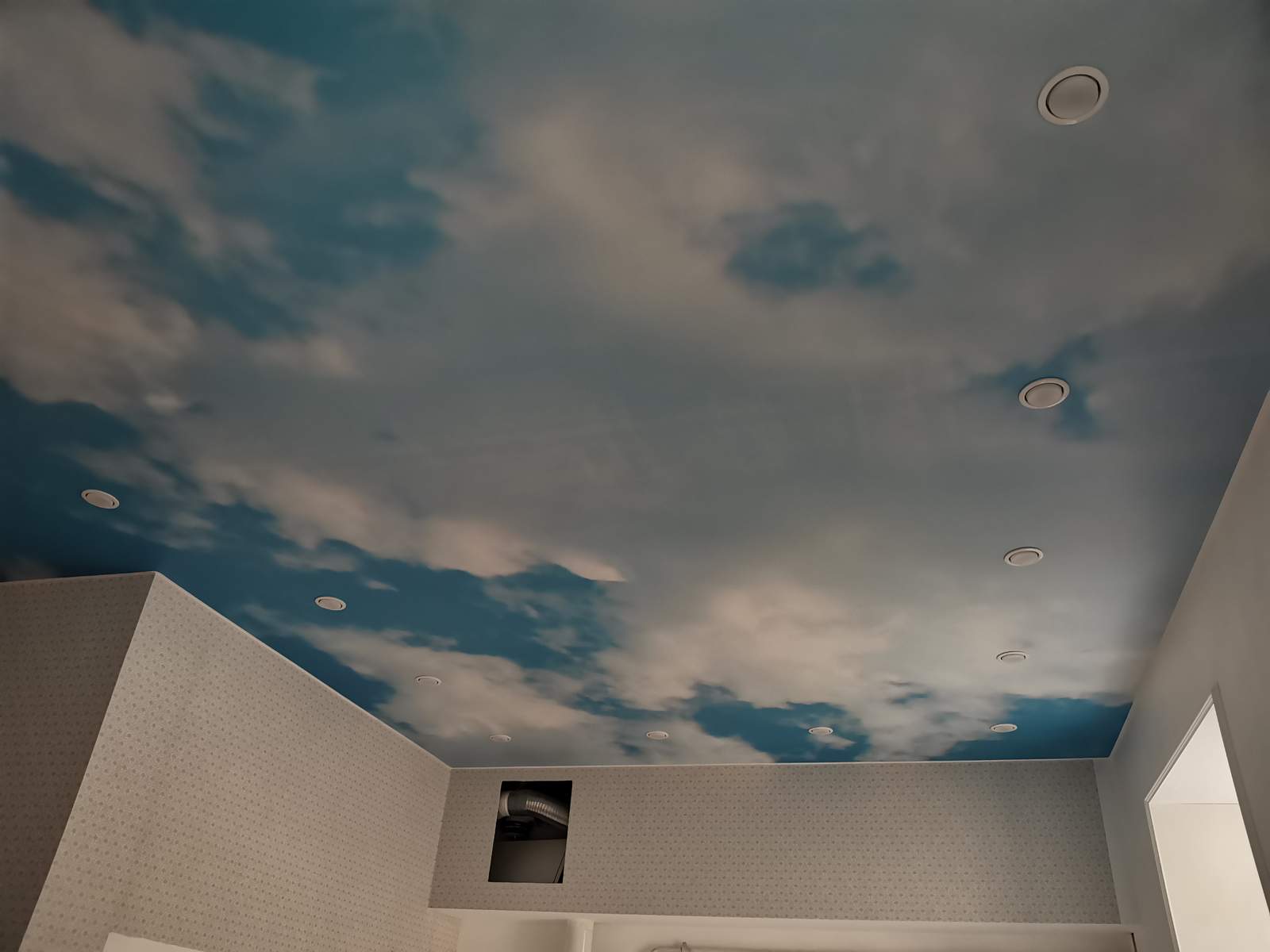 Потолки с фотопечатью — это эффектный способ подчеркнуть индивидуальность интерьера. На полотно можно нанести любое изображение: от пейзажей и репродукций известных художников до абстрактных узоров или персонажей мультфильмов. Такой потолок сразу привлекает внимание и делает пространство выразительным. Особенно популярны многоуровневые конструкции с фотопечатью, позволяющие объединить объём и изображение в единую композицию.