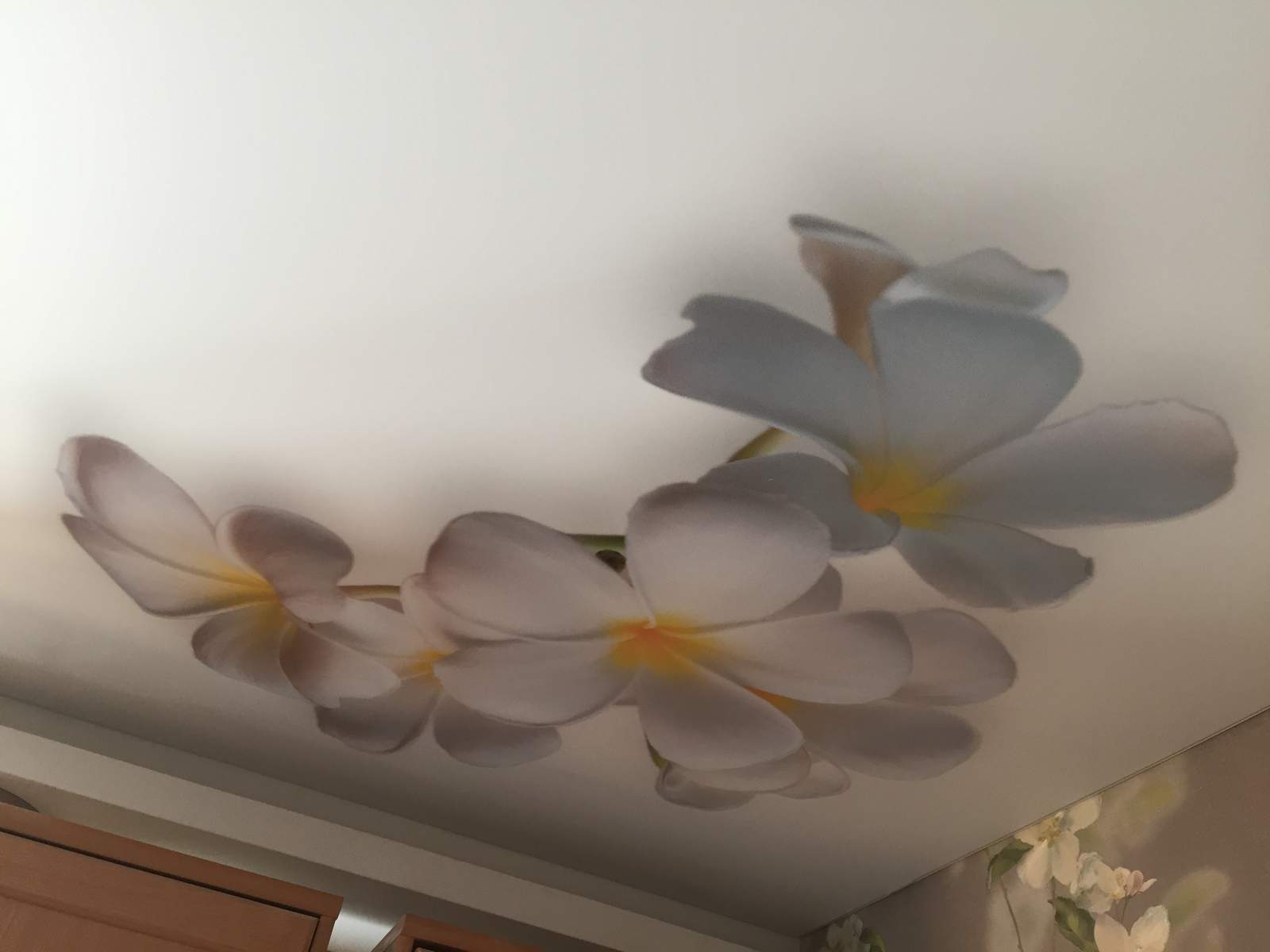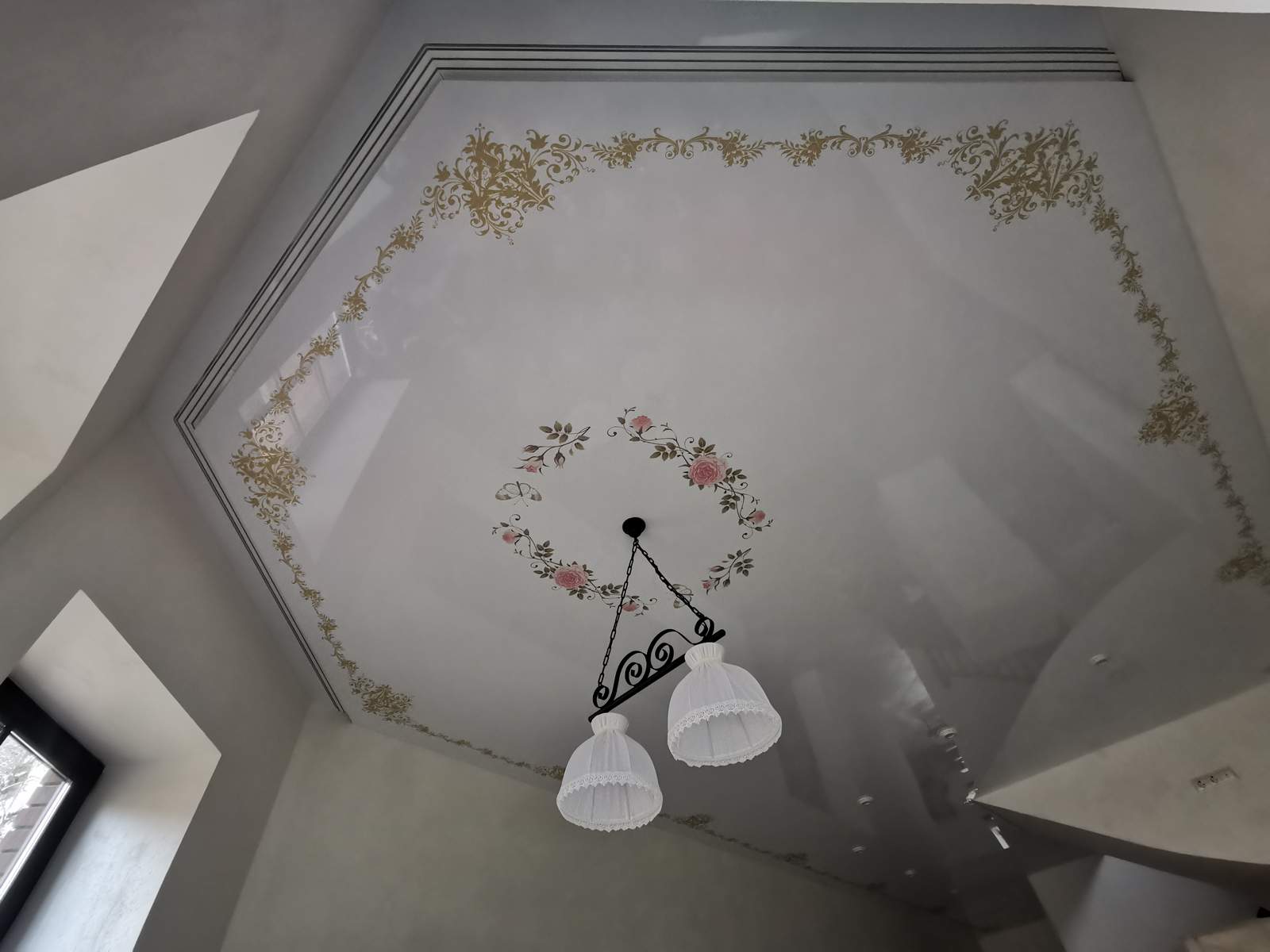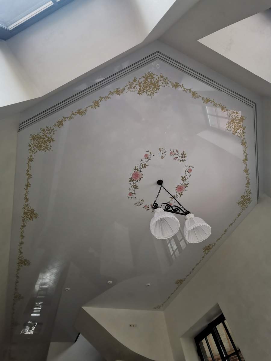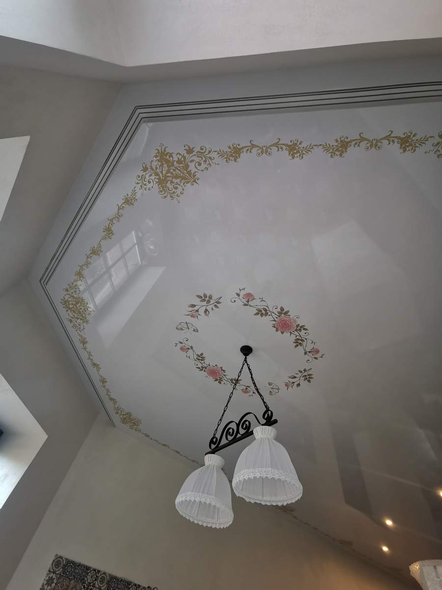 Потолки с фотопечатью — это эффектный способ подчеркнуть индивидуальность интерьера. На полотно можно нанести любое изображение: от пейзажей и репродукций известных художников до абстрактных узоров или персонажей мультфильмов. Такой потолок сразу привлекает внимание и делает пространство выразительным. Особенно популярны многоуровневые конструкции с фотопечатью, позволяющие объединить объём и изображение в единую композицию.